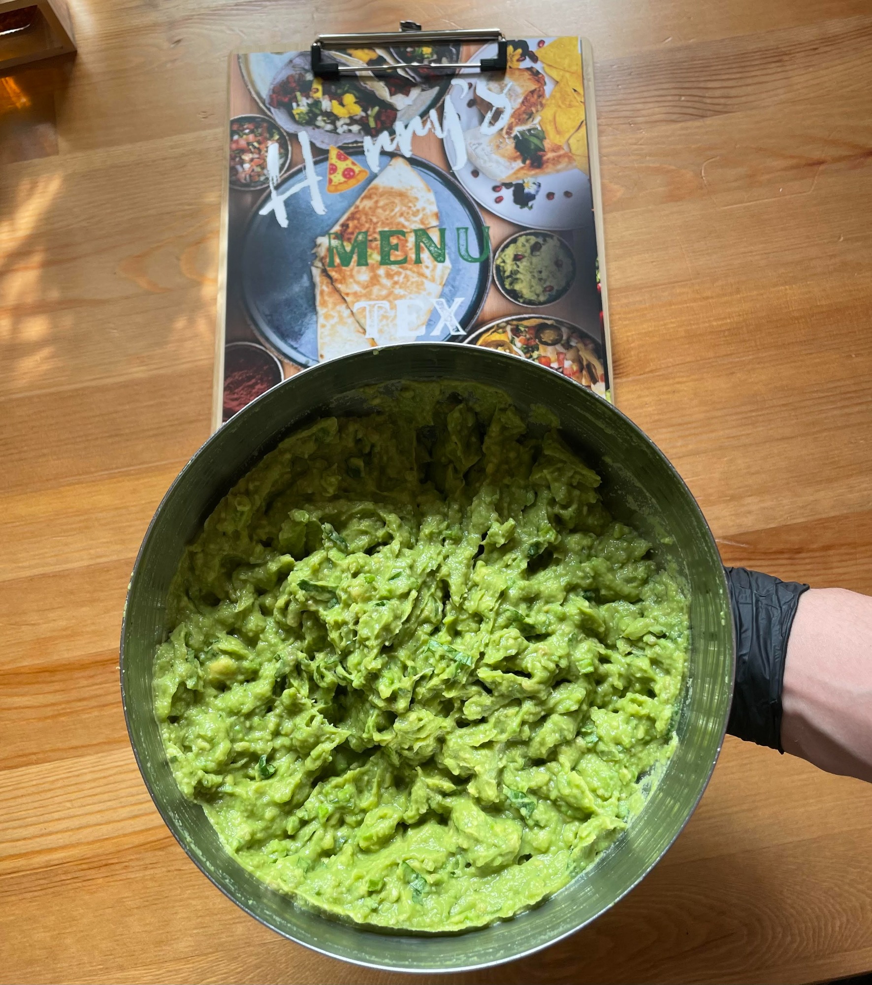 (mięso mielone, ryż, pasta z fasoli, guacamole, ser mozzarella)